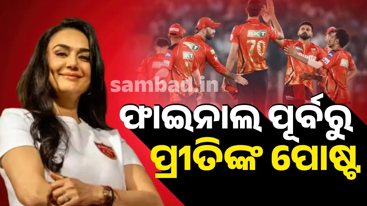 ନୂଆଦିଲ୍ଲୀ: ଅଭିନେତ୍ରୀ ପ୍ରୀତି ଜିଣ୍ଟାଙ୍କ ଦଳ ପଞ୍ଜାବ କିଙ୍ଗ୍ସ ଆଇପିଏଲ ୨୦୨୫ର ଫାଇନାଲରେ ରୟାଲ ଚ୍ୟାଲେଞ୍ଜର୍ସ ବାଙ୍ଗାଲୋର ସହିତ ମୁକାବିଲା କରିବାକୁ ପ୍ରସ୍ତୁତ ଅଛି। ଏହି କ୍ରମରେ ଟିମର ସହ-ମାଲିକ ତଥା ବଲିଉଡ୍ ଅଭିନେତ୍ରୀ ପ୍ରୀତି ଜିଣ୍ଟା ଦଳକୁ ଉତ୍ସାହିତ କରିବା ସହିତ ମନବୋଳ ବୃଦ୍ଧି କରିବା ପାଇଁ ଏକ ପୋଷ୍ଟ ସେୟାର କରିଛନ୍ତି।