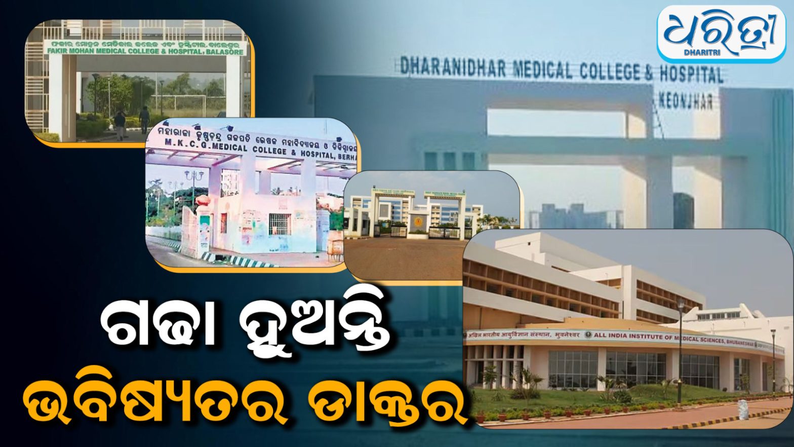 ୩.ଧରଣୀଧର ମେଡିକାଲ କଲେଜ ଆଣ୍ଡ ହସ୍ପିଟାଲ (DDMCH)। ଏହି କଲେଜର ଭିତ୍ତିପ୍ରସ୍ତର ଓଡ଼ିଶାର ମାନ୍ୟବର ମୁଖ୍ୟମନ୍ତ୍ରୀ ଶ୍ରୀଯୁକ୍ତ ନବୀନ ପଟ୍ଟନାୟକ ୦୨ ନଭେମ୍ବର ୨୦୧୬ରେ ସ୍ଥାପନ କରିଥିଲେ। ଏହି ମେଡିକାଲ କଲେଜ ଏବଂ ହସ୍ପିଟାଲ କେନ୍ଦୁଝର ଜିଲା ମୁଖ୍ୟାଳୟ ହସ୍ପିଟାଲକୁ ଶିକ୍ଷାଦାନ ହସ୍ପିଟାଲ ଭାବରେ ବ୍ୟବହାର କରି ଡାକ୍ତରଙ୍କ ସଂଖ୍ୟା ଅନୁପାତକୁ ଉନ୍ନତ କରିବା ଲକ୍ଷ୍ୟରେ ନିର୍ମିତ ହୋଇଥିଲା। କଲେଜ କ୍ୟାମ୍ପସ ୪୪.୪୦ ଏକର ପରିମିତ ଅଞ୍ଚଳରେ ବିସ୍ତୃତ। ବର୍ତ୍ତମାନର ଶିକ୍ଷାଦାନ ହସ୍ପିଟାଲ (ଡିଏଚଏଚ, କେନ୍ଦୁଝର) କଲେଜ କ୍ୟାମ୍ପସରୁ ପ୍ରାୟ ୫ କିଲୋମିଟର ଦୂରରେ କେନ୍ଦୁଝର ମୁଖ୍ୟ ସହରରେ ଅବସ୍ଥିତ। ଧରଣୀଧର ମେଡିକାଲ କଲେଜ ଏବଂ ହସ୍ପିଟାଲ କେନ୍ଦୁଝର ମେଡିକାଲ କଲେଜ ନିକଟରେ ଥିବା ନିଜସ୍ବ ଶିକ୍ଷାଦାନ ହସ୍ପିଟାଲ କୋଠା ଅଛି।