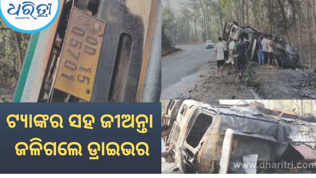 ପାଲଲହଡା,୧୩।୩(ଦିବ୍ୟଜ୍ୟୋତି ଦାଶ): ଗୁରୁବାର ବିଳମ୍ବିତ ରାତିରେ ଭୟଙ୍କର ଦୁର୍ଘଟଣା । ଟ୍ୟାଙ୍କର ସହ ଜୀଅନ୍ତା ଜଳିଗଲେ ଡ୍ରାଇଭର । ବିଳମ୍ବିତ ରାତିରେ ଅନୁଗୁଳ ଜିଲା ଖମାର ଥାନା ଅନ୍ତର୍ଗତ ବାଲିପଶି ଛକ ନିକଟ ଜାତୀୟରାଜପଥ ୧୪୯ରେ ଭାରସାମ୍ୟ ହରାଇ ଏକ ପିଚୁ ବୋଝେଇ ଟ୍ୟାଙ୍କର ଓଲଟି ପଡିଥିଲା ।