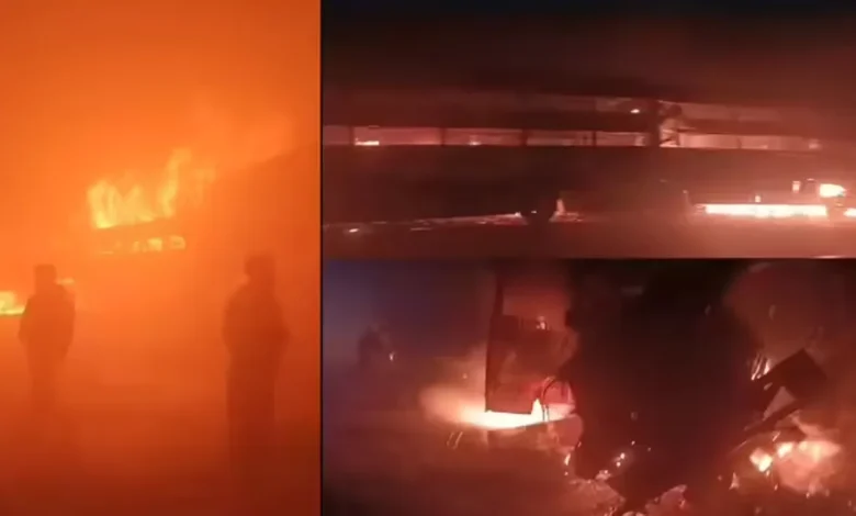 ମଥୁରା: ଉତ୍ତର ପ୍ରଦେଶର ମଥୁରାରେ ମଙ୍ଗଳବାର ଭୋର ସମୟରେ ଏକ ଧରଣର ସଡ଼କ ବଡ଼ ଦୁର୍ଘଟଣା ଘଟିଛି। ସାତୋଟି ବସ୍ ଏବଂ ତିନୋଟି କାର ଧକ୍କା ଖାଇ ନିଆଁ ଲାଗିଗଲା। ଅଗ୍ନିକାଣ୍ଡ ଯୋଗୁଁ ଘଟଣାସ୍ଥଳରେ ହଇଚଇ ସୃଷ୍ଟି ହୋଇଥିଲା। ସୂଚନା ପାଇବା ପରେ ସ୍ଥାନୀୟ ପୁଲିସ ଏବଂ ଜିଲ୍ଲା ପ୍ରଶାସନ ଘଟଣାସ୍ଥଳରେ ପହଞ୍ଚି ଉଦ୍ଧାର କାର୍ଯ୍ୟ ଆରମ୍ଭ କରିଥିଲେ।