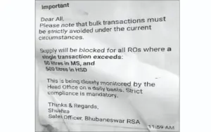 Petrol pump: ପେଟ୍ରୋଲ୍ ପମ୍ପମାନଙ୍କୁ କଡ଼ା ତାଗିଦ୍: ଥରକେ ୫୦ ଲିଟରରୁ ଅଧିକ ପେଟ୍ରୋଲ୍ ବିକ୍ରି ମନା