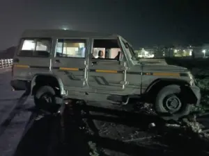 Driver Narrowly Escaped: ରେଲୱେ ଓଭରବ୍ରିଜ ସୁରକ୍ଷାବାଡ଼କୁ ଧକ୍କା ଦେଇ ଝୁଲିଲା ବୋଲେରୋ, ଅଳ୍ପକେ ବର୍ତ୍ତିଲେ ଡ୍ରାଇଭର
