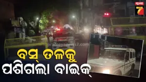 ଦ୍ରୁତ ଗତି ମହାବିପତ୍ତି, ଭାରସାମ୍ୟ ହରାଇ ବସ୍ ତଳକୁ ପଶିଗଲା ବାଇକ୍