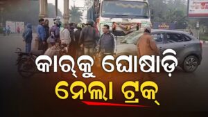 ଭୟଙ୍କର ଦୁର୍ଘଟଣା, ଧକ୍କା ପରେ କାର୍କୁ ୨୦ ମିଟର ଘୋଷାଡ଼ି ନେଲା ହାଇଓ୍ୱା