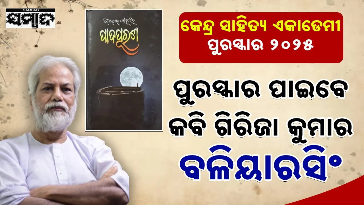 କେନ୍ଦ୍ର ସାହିତ୍ୟ ଏକାଡେମୀ ତରଫରୁ ୨୦୨୫ ବର୍ଷ ପାଇଁ ସାହିତ୍ୟ ଏକାଡେମୀ ପୁରସ୍କାର ଘୋଷଣା କରାଯାଇଛି। ଏଥିରେ ଓଡ଼ିଶାରୁ ବିଶିଷ୍ଟ କବି ଗିରିଜା କୁମାର ବଳିୟାରସିଂ କବିତା ବିଭାଗ ପାଇଁ ମନୋନିତ ହୋଇଛନ୍ତି। ବିଭିନ୍ନ ଭାଷାରେ ସାରା ଭାରତର ବିଶିଷ୍ଟ ଲେଖକମାନଙ୍କୁ ଏକାଡେମୀ ପକ୍ଷରୁ ଚୟନ କରାଯାଇଛି।