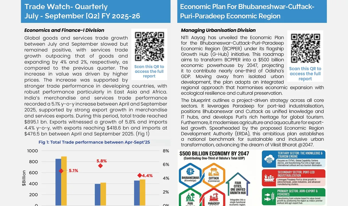 ଭୁବନେଶ୍ବର: ନିତି ଆୟୋଗ ପକ୍ଷରୁ ଜାରି କରାଯାଇଥିବା ଚଳିତ ବର୍ଷ ଏପ୍ରିଲ ମାସର ନିଉଜଲେଟର୍ ‘ନିତିସନ୍ଧାନ’ରେ ଓଡ଼ିଶାର ‘ଭୁବନେଶ୍ବର-କଟକ–ପୁରୀ-ପାରାଦୀପ ଅର୍ଥନୈତିକ ଅଞ୍ଚଳ (ବିସିପିପିଇଆର୍) ଯୋଜନା ସ୍ଥାନ ପାଇଛି। ଏହି ଯୋଜନା ସମ୍ପର୍କରେ ସେଥିରେ ବିସ୍ତୃତ ଆଲୋଚନା କରାଯାଇଛି।